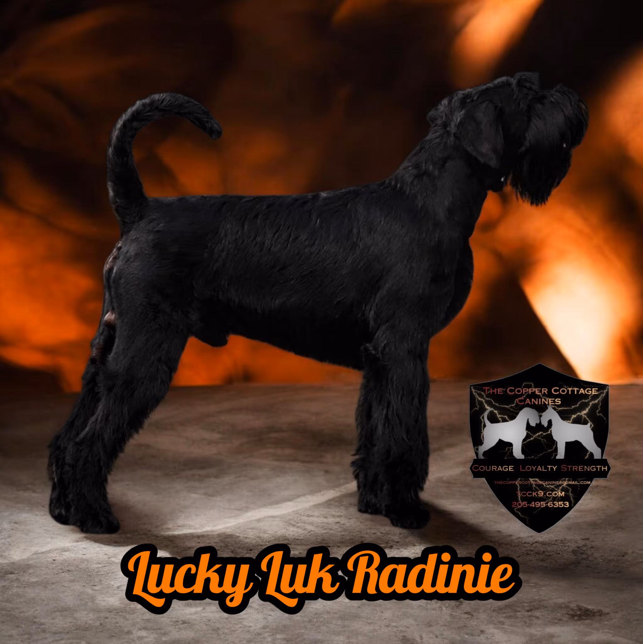 Lucky Luk Radinie is a powerful and correct pure black Giant Schnauzer male born in the Czech Republic, bred under the CMKU/FCI system and titled in Germany in IGP. Known as “Luka,” he combines strong working ability, correct breed type, and a confident, stable temperament. Luka is sired by Ivanhoe Hanno Veto V1 CAC IGP3 and his dam Czech Republic National Champion Karis vom Hatzbachtal V1 IGP3.